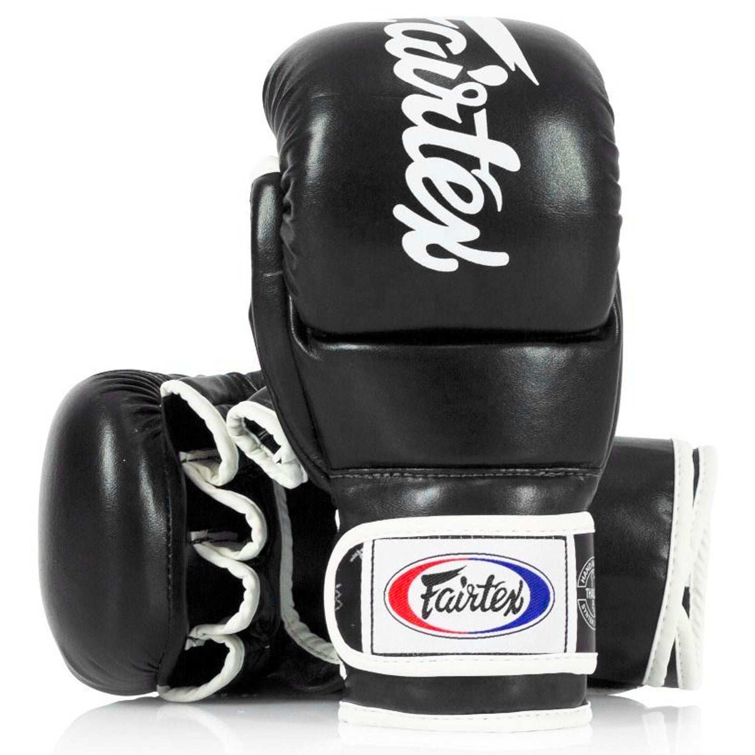 Hybrid design with thick and extra padding for maximum safety, The separation between finger loop and knuckle padding make it very convenient to form a fist. Constructed from Syntek leather with heavy-duty water-resistant and non-tear nylon lining. Syntek is Fairtex's signature synthetic leather material. It's engineered for top performance and is just as durable as genuine leather.